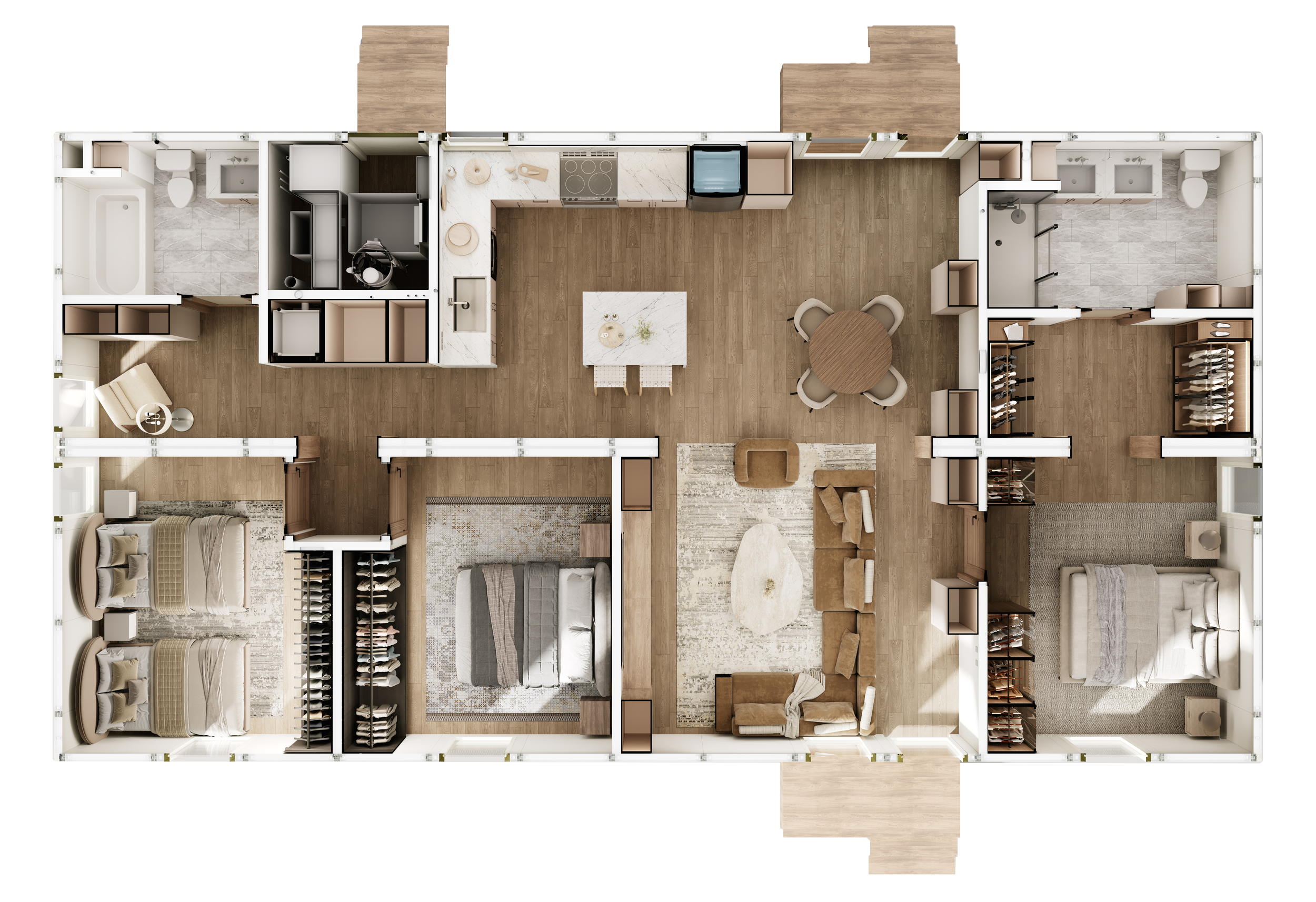 A zero-carbon footprint ensures these homes meet the highest sustainability standards.